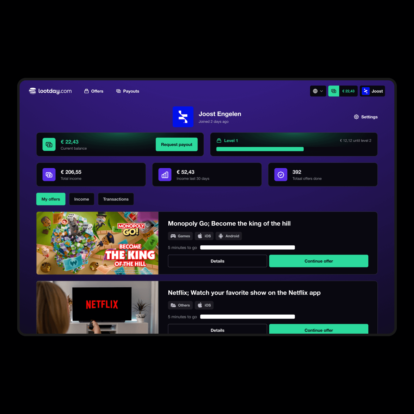 The website was designed with clarity and conversion in mind. Visitors immediately understand how Lootday works and what is at stake. The visual language aligns seamlessly with the branding and speaks directly to the audience. We also built a secure group and login environment, allowing users to easily manage participation and track progress.